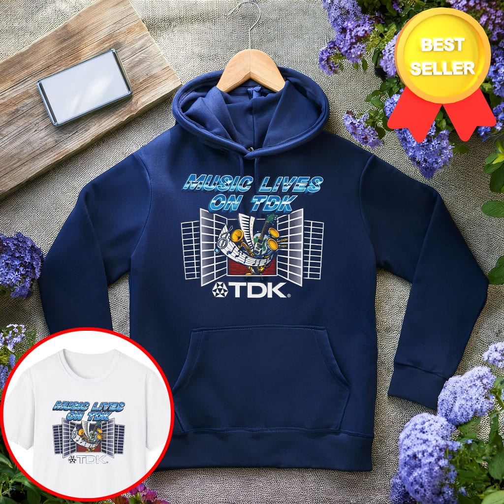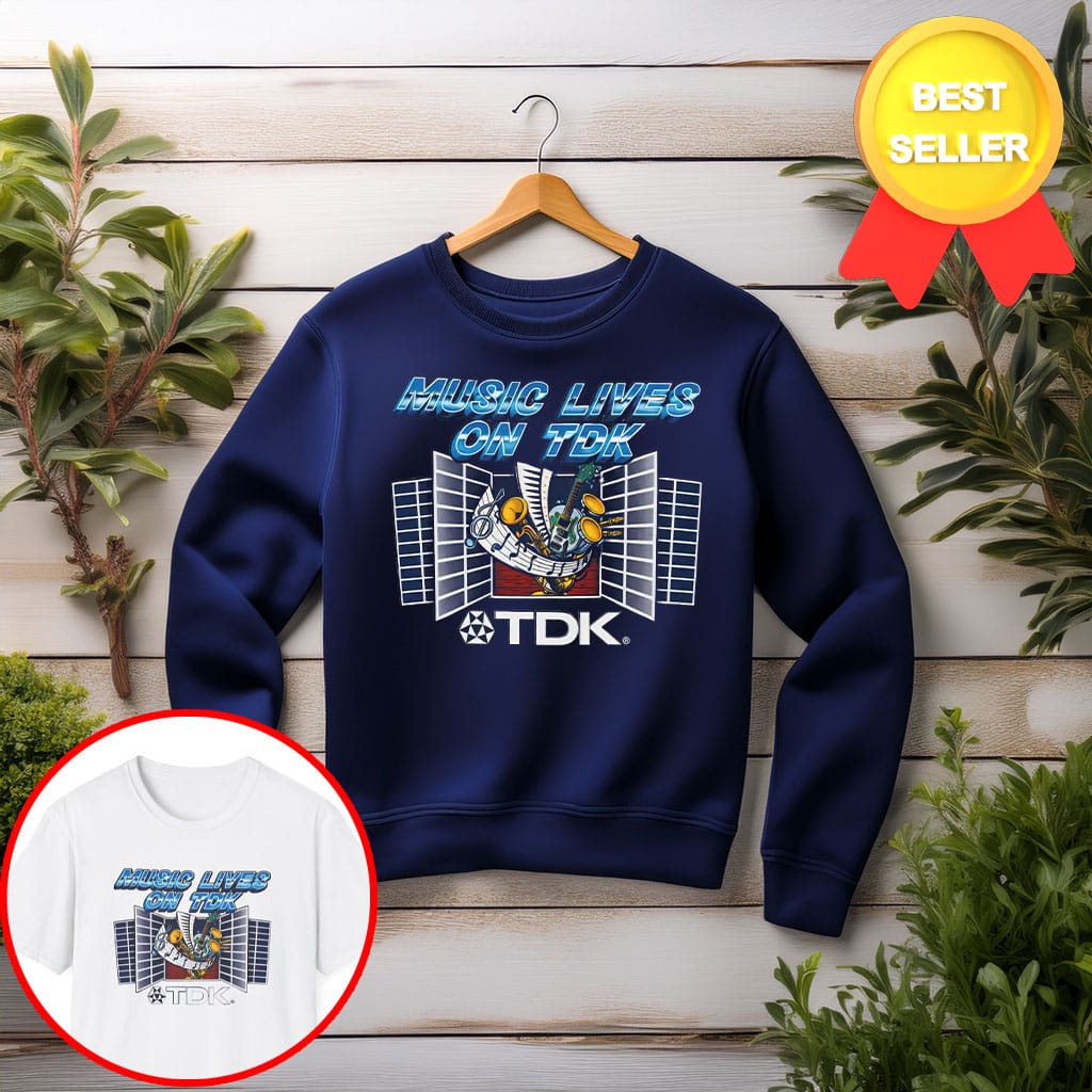 Featuring a vintage-inspired graphic drawn from classic cassette tape aesthetics and bold text that reads “Music Lives On TDK,” this shirt celebrates the enduring power of music — from mixtapes to digital playlists. The retro design evokes nostalgia and style, making it a standout piece in any wardrobe.